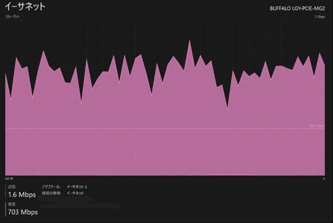 現状、高速通信の環境が整っていないため、ネットワークカードの高速通信の検証はできませんが、通信の状況について紹介します。