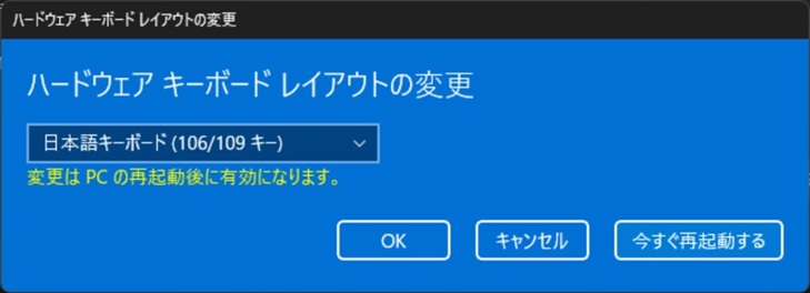 設定変更後、PC の再起動が必用となります。